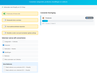 In de gratis proefversie worden per entiteit 10 items gemigreerd. Zo zie je precies hoe de migratie eruitziet, zonder direct je hele shop te verplaatsen. Werkt het zoals je wilt? Bij aanschaf kun je de migratie zo vaak uitvoeren als je nodig hebt — ideaal voor meerdere klanten of meerdere omgevingen.
