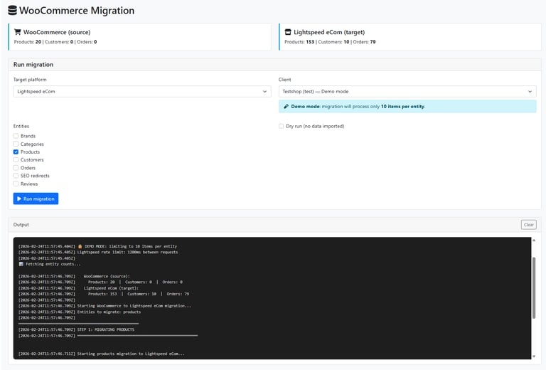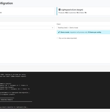 Dry run: voer de migratie uit zonder dat er iets in Shopify of Lightspeed wordt aangepast.