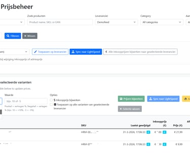 Laad je productfeeds van externe leveranciers, bewerk ze en update je Shopify, LightSpeed of CCV Shop.