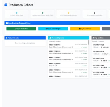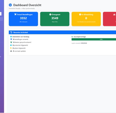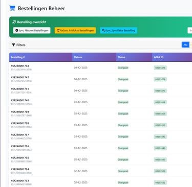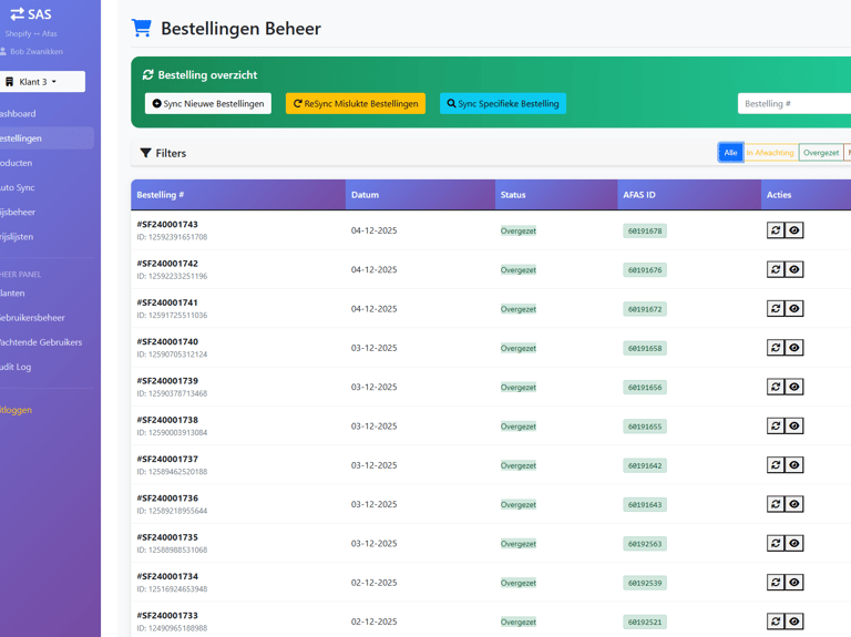Real-time synchronisatie van orders, klanten en voorraad tussen Shopify en AFAS ERP-systeem.